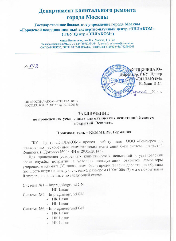 Заключение по проведению климатических испытаний покрытий HK-Lasur, Langzeit-Lasur UV