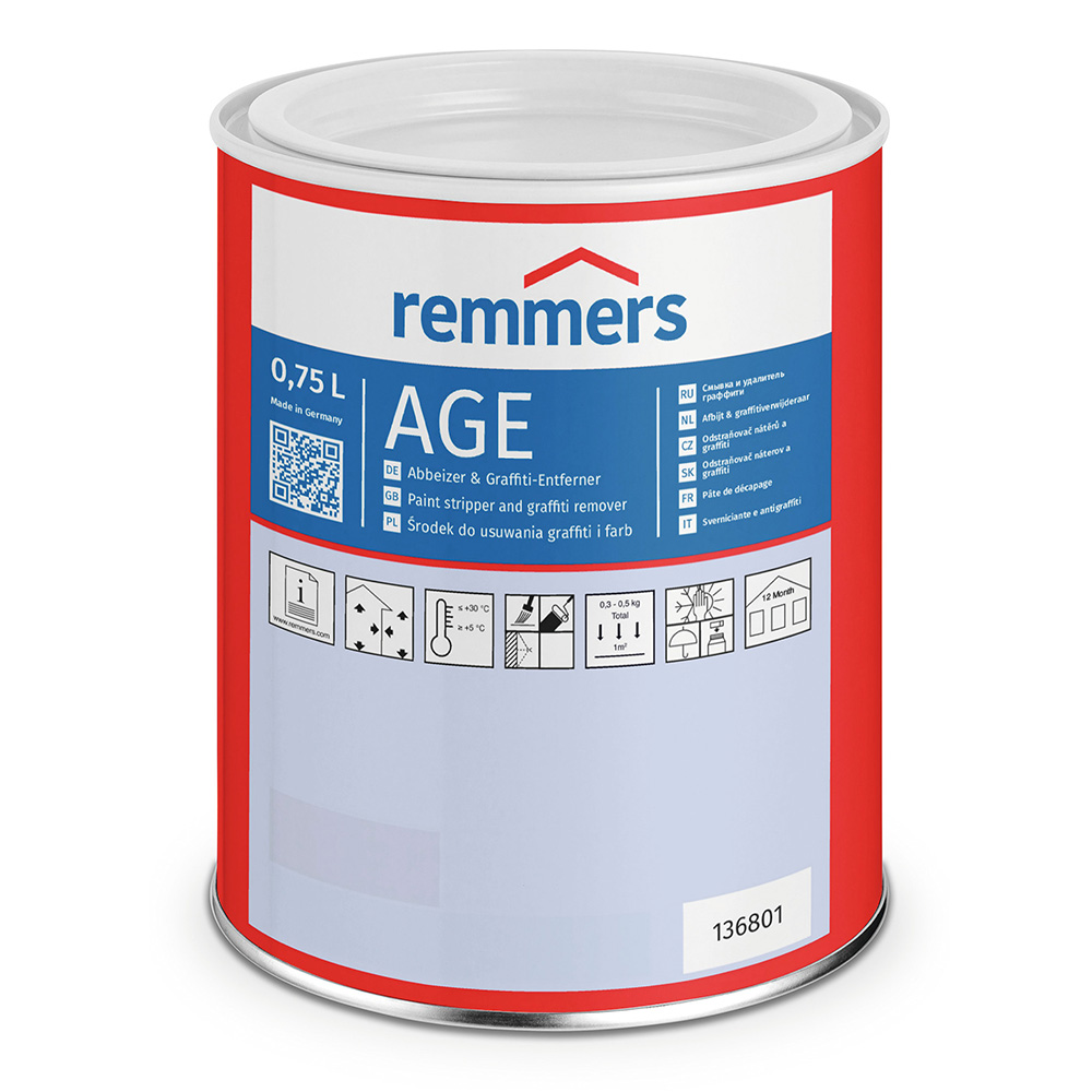 - Продукт Remmers AGE обладает длительным временем обработки (т.н. «открытым временем»), что обеспечивает надежное удаление даже старых и глубоко лежащих лакокрасочных покрытий и остатков краски.
